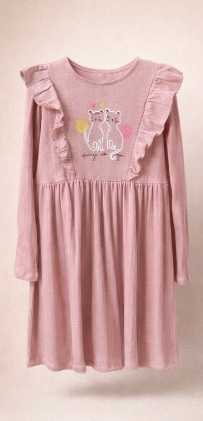 Deze lieve jurk is een echte favoriet voor elke dag met ruches op de schouders en een schattige print op de borst.