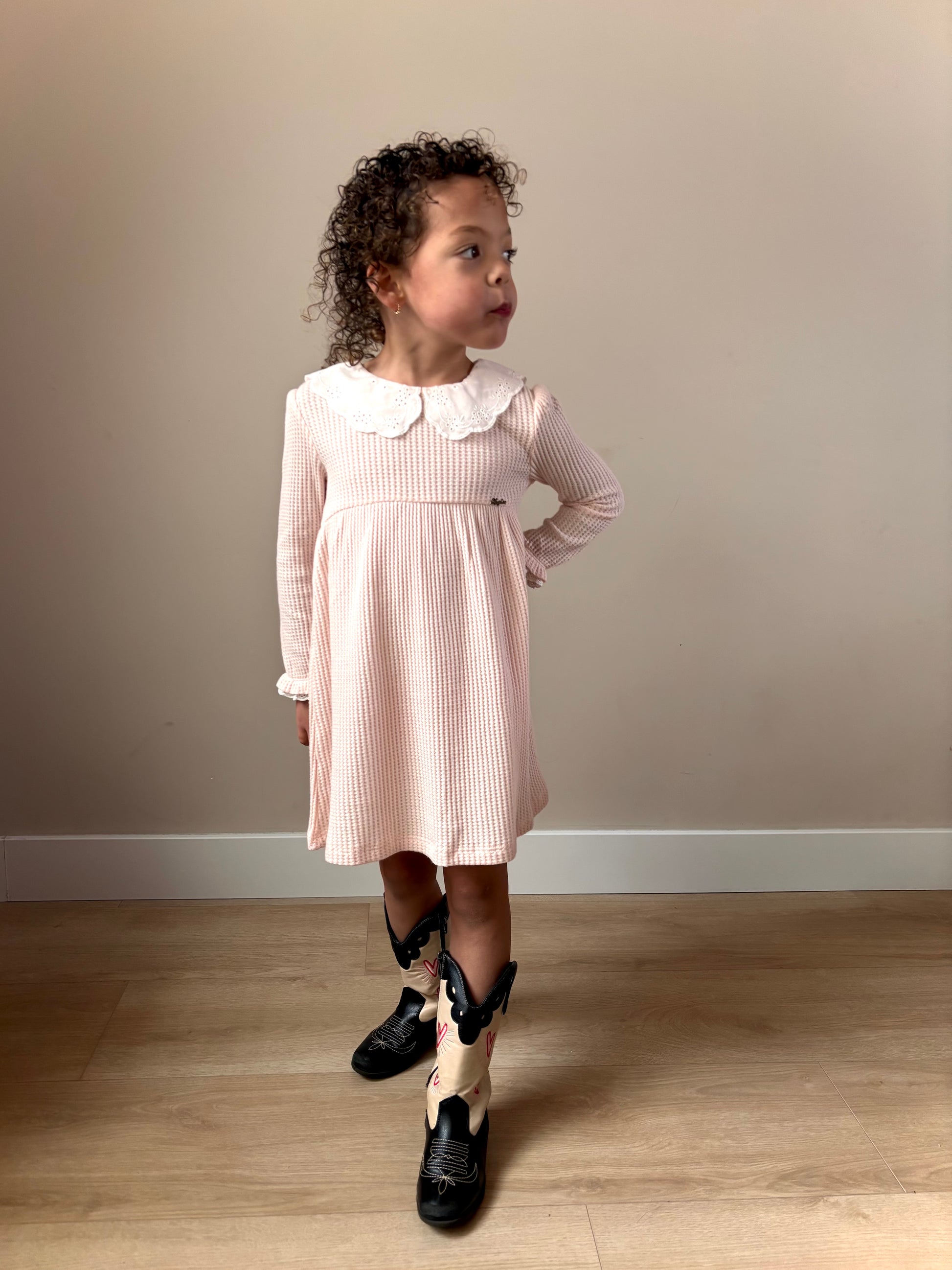 Een lieve, comfy jurk met sierlijke kraag en zachte structuur. Perfect voor elke dag én elke gelegenheid.