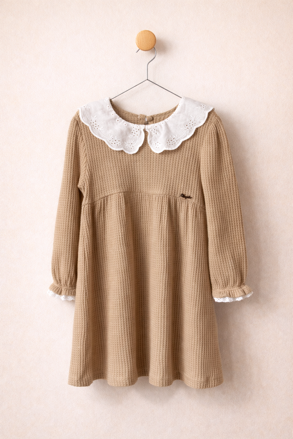 Een lieve, klassieke jurk met elegante kraag en fijn ribdetail. Gemaakt van een zachte katoenmix, 96% katoen, 4% elastaan.