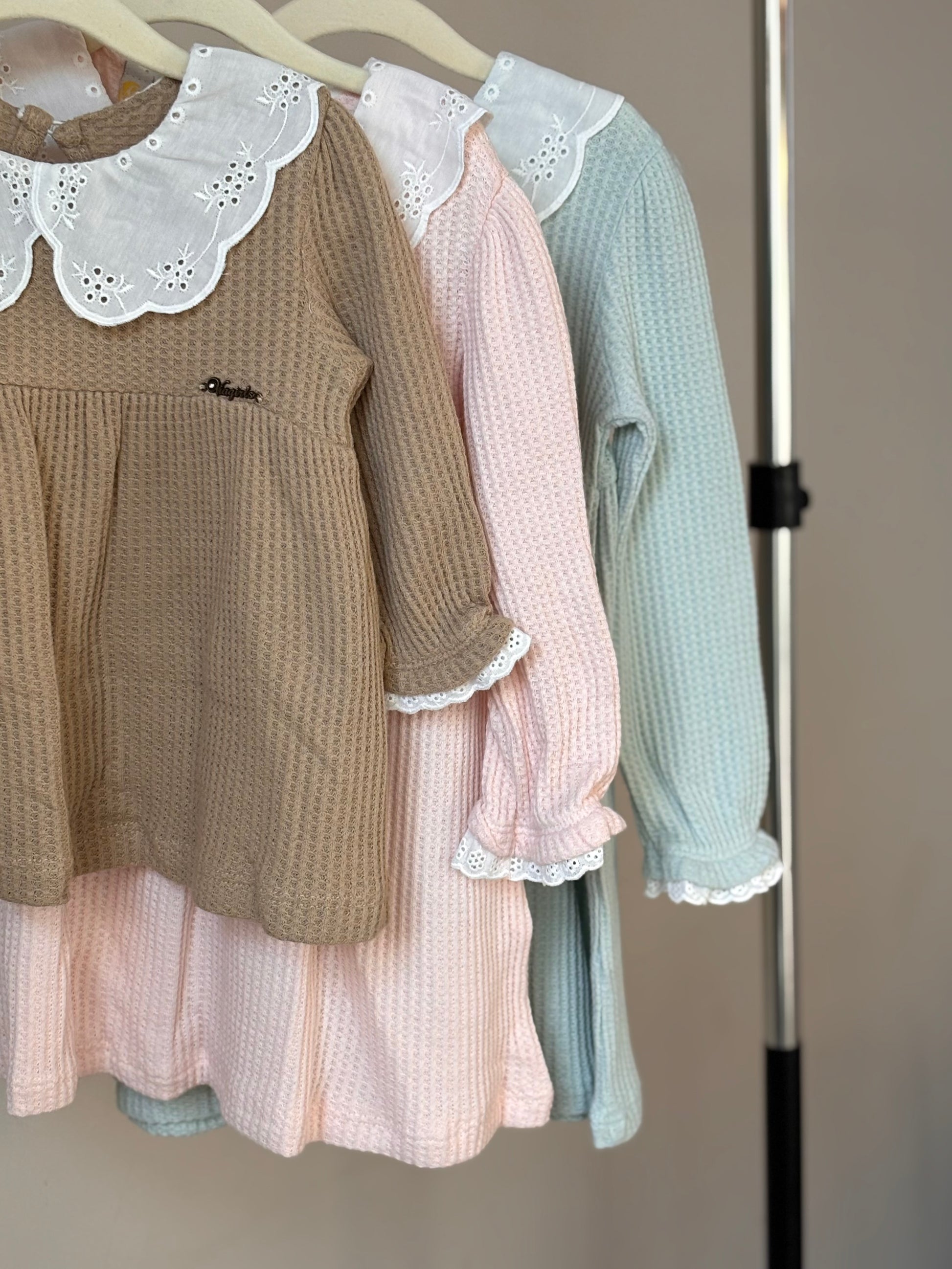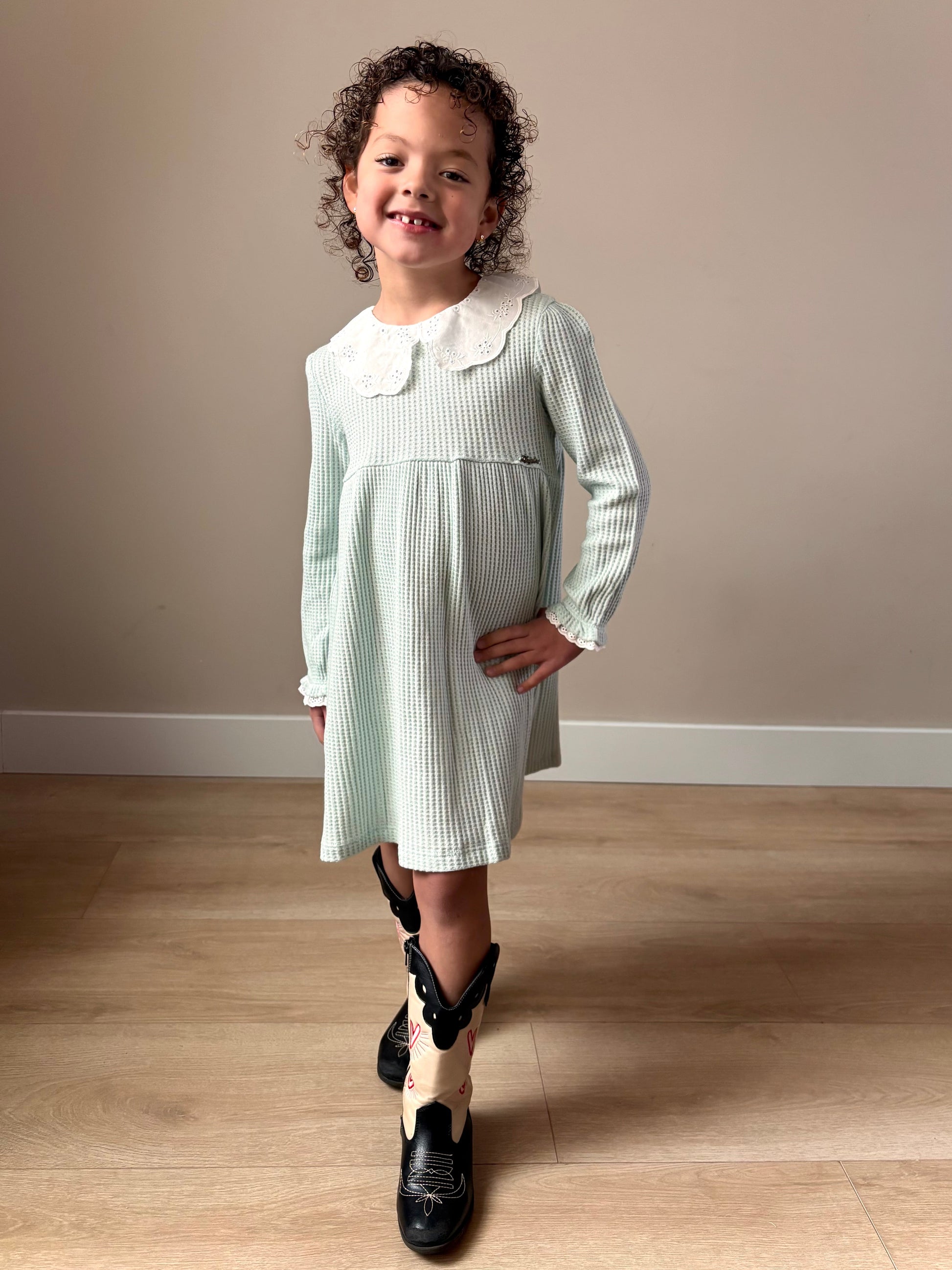 Een lieve, comfy jurk met sierlijke kraag en zachte structuur. Perfect voor elke dag én elke gelegenheid.
