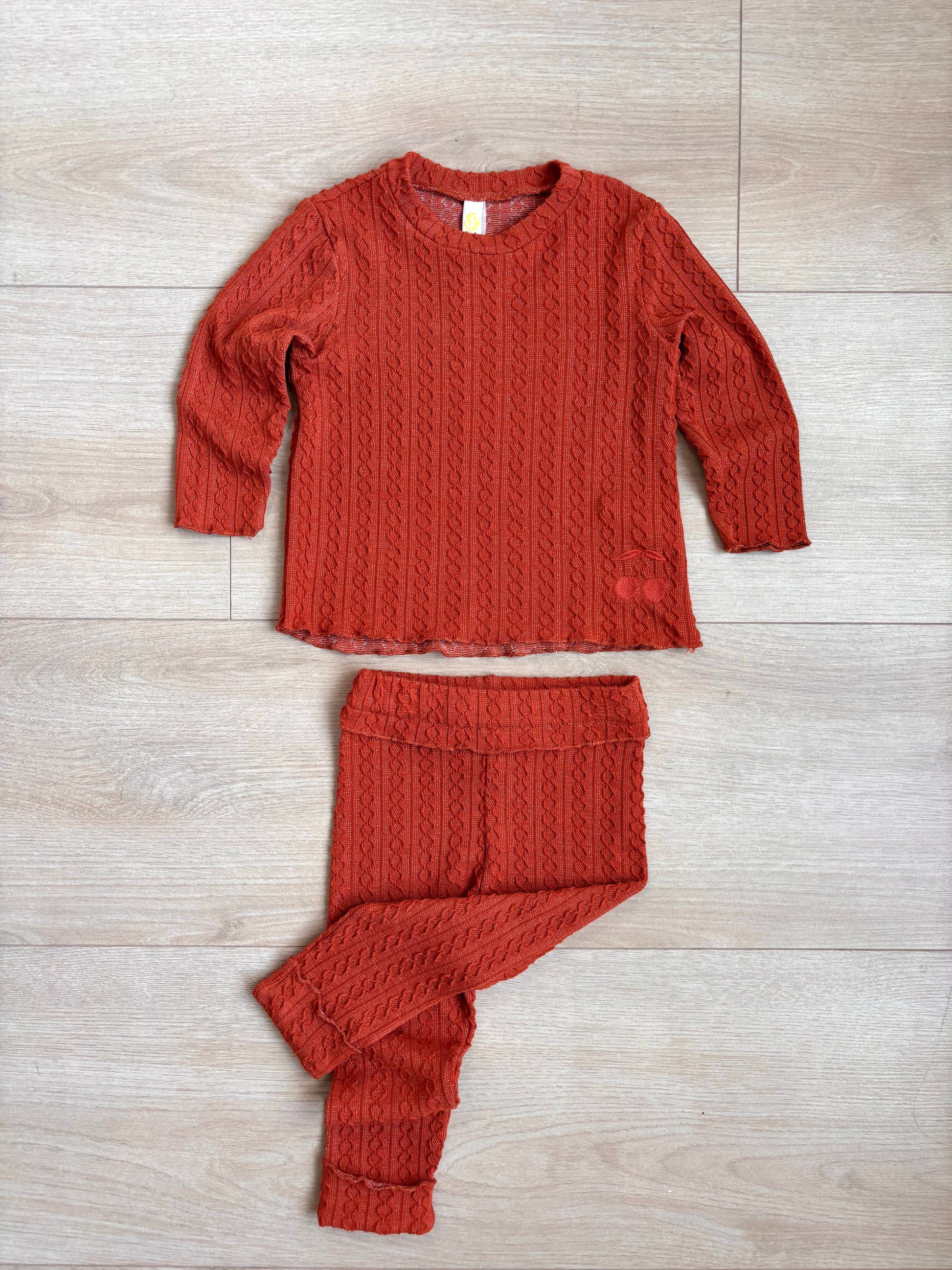Set Sue is een lieve, zachte kabelset die heerlijk zit. Ideaal voor speel­dagen én cozy dagen thuis.