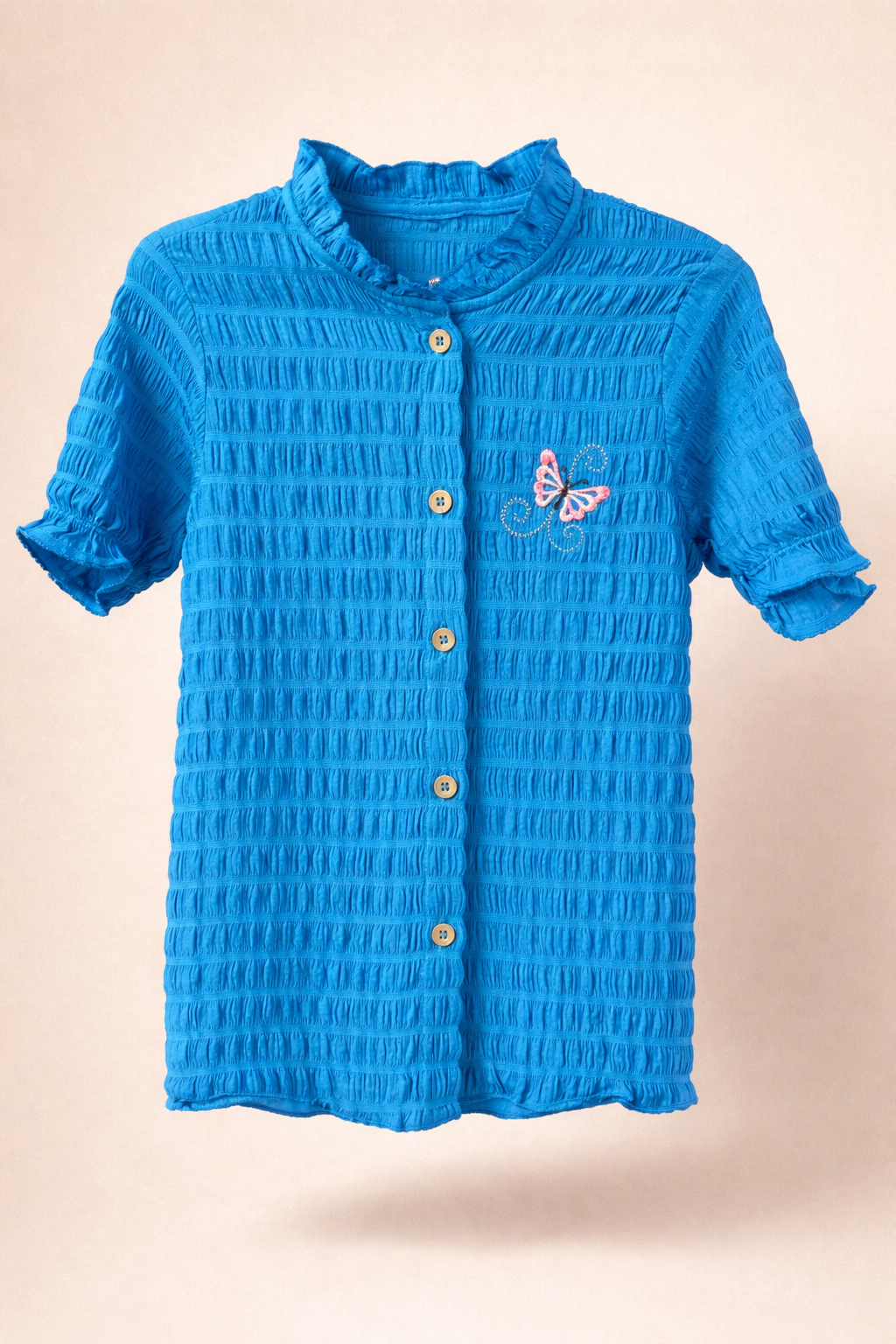 Zacht gestructureerde blouse met knoopsluiting en een subtiel geborduurd detail.